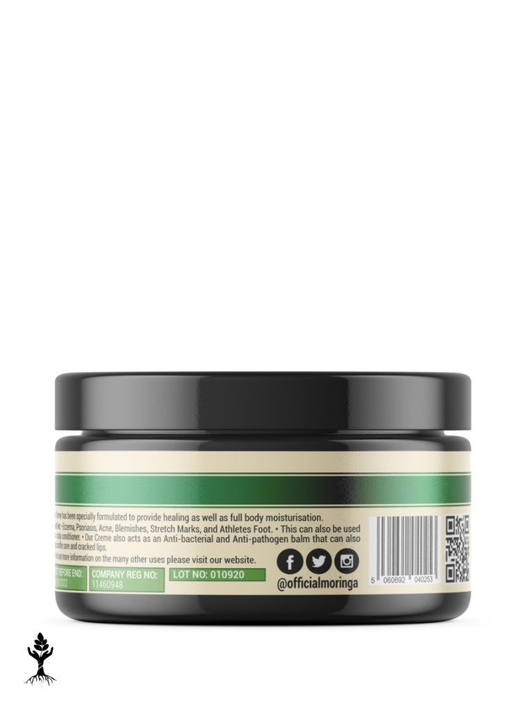 Our Moringa & Shea Butter Face & Body Creme has been specially formulated and blended with Pure Cold Pressed Moringa Oil, Black Seed Oil and Lemon Grass. It contains Anti-Bacterial, Anti-Microbial and Anti-Fungal properties. It’s rich, smooth texture means it can be easily applied and absorbed on the body and even on the scalp if so desired. Our concentrated formula ensures that a little goes a long way!